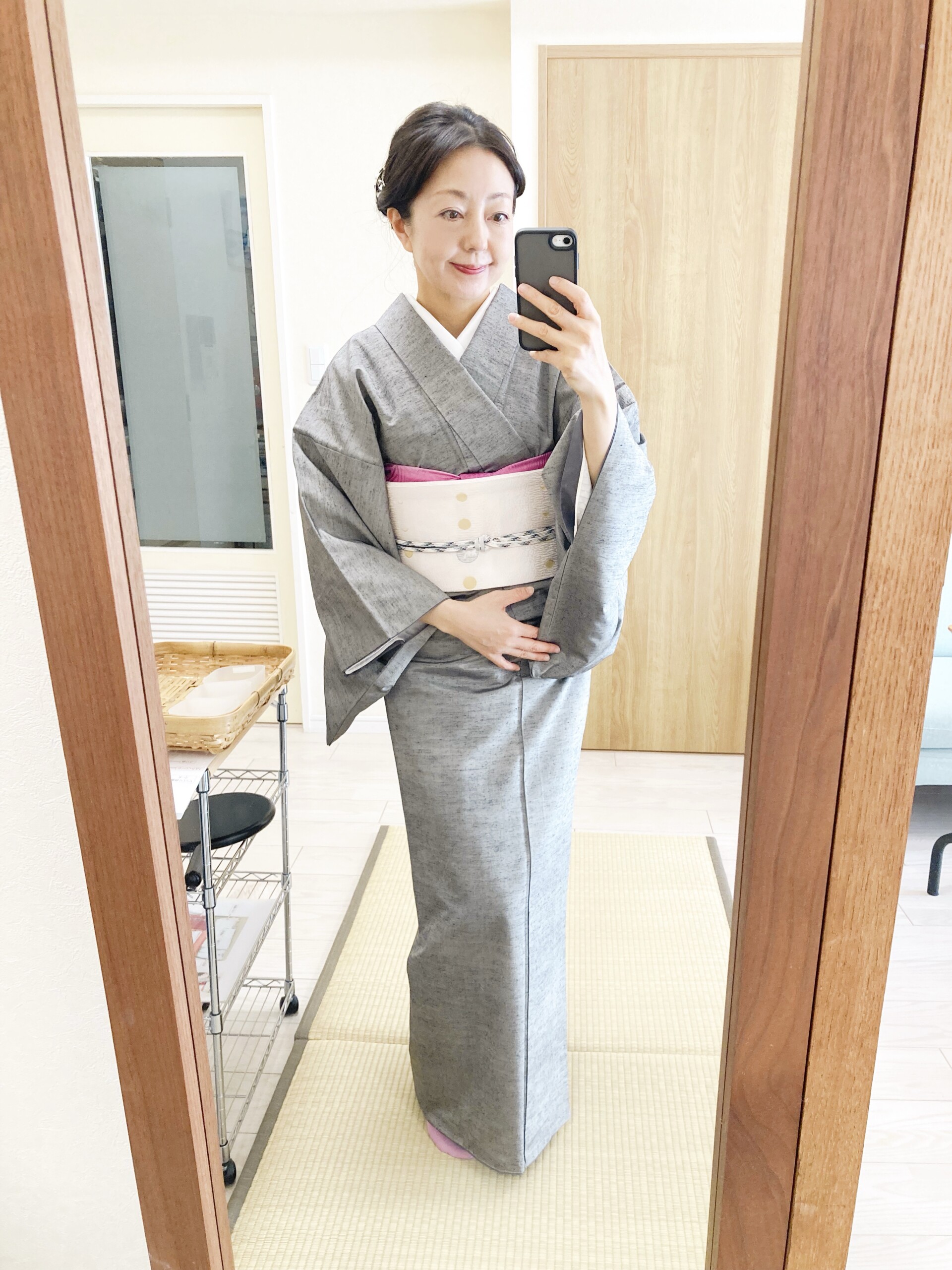 自分の着物を自分で着付けている時間が