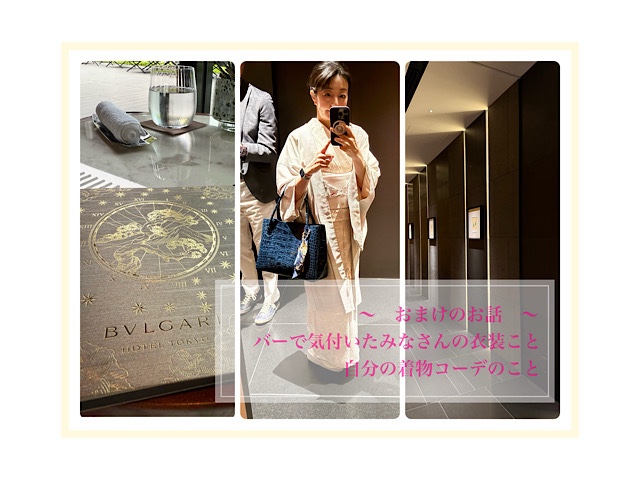 〜続きのお話し〜、ホテルバーでのお客さんたちの装いや自分の着物の話