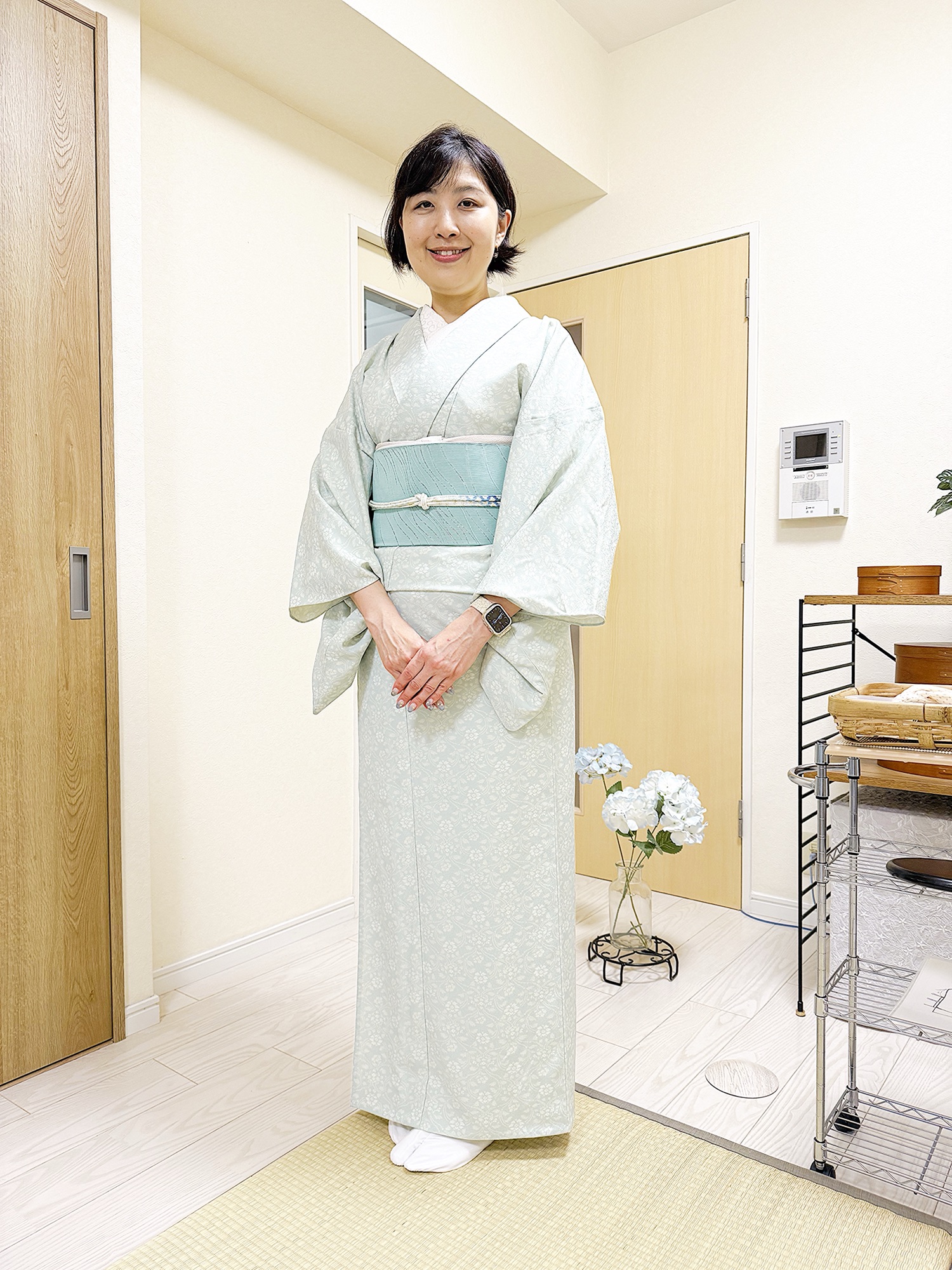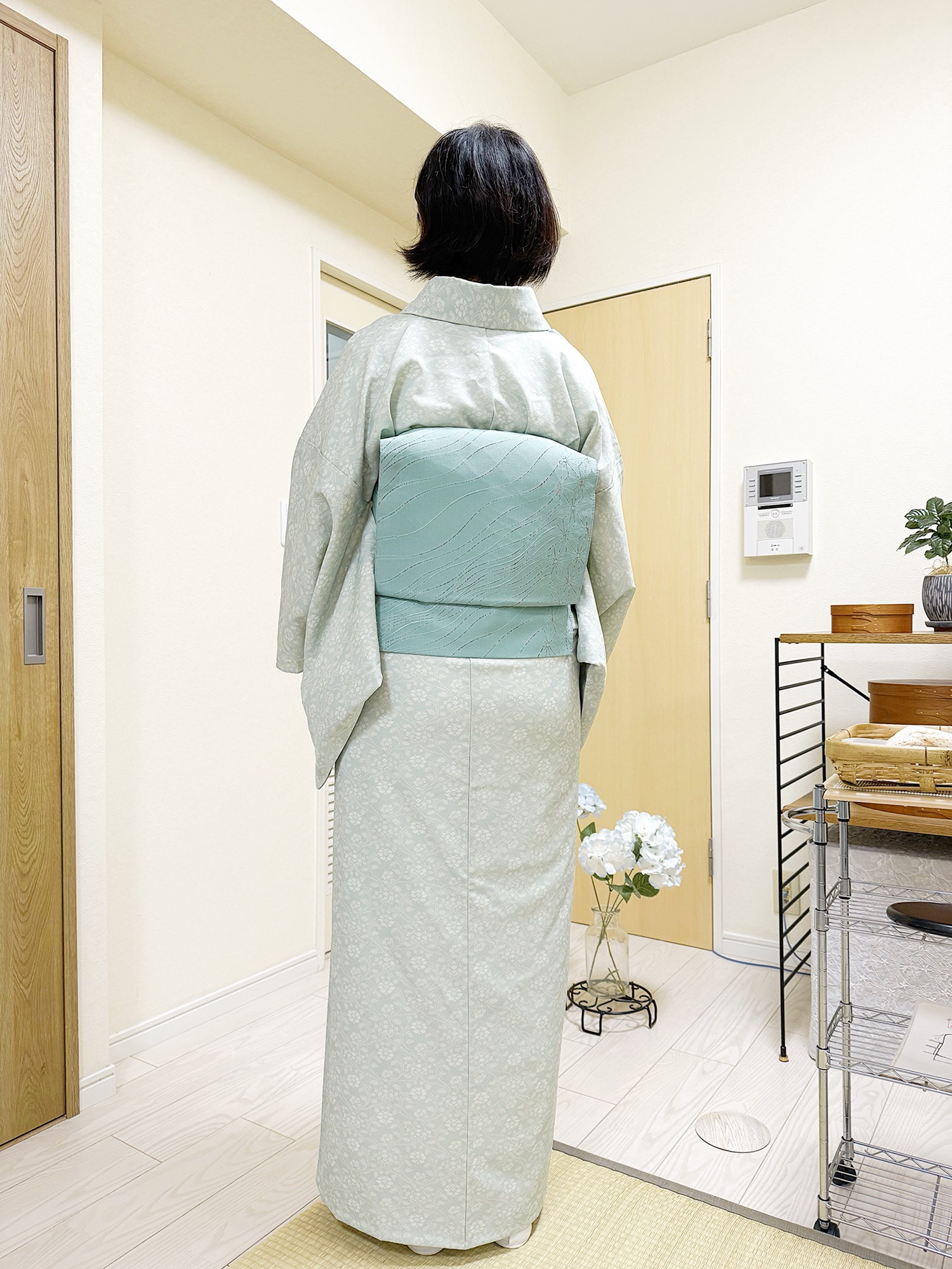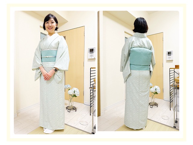 帯は同色で合わせました。ステキな爽やかコーデ!