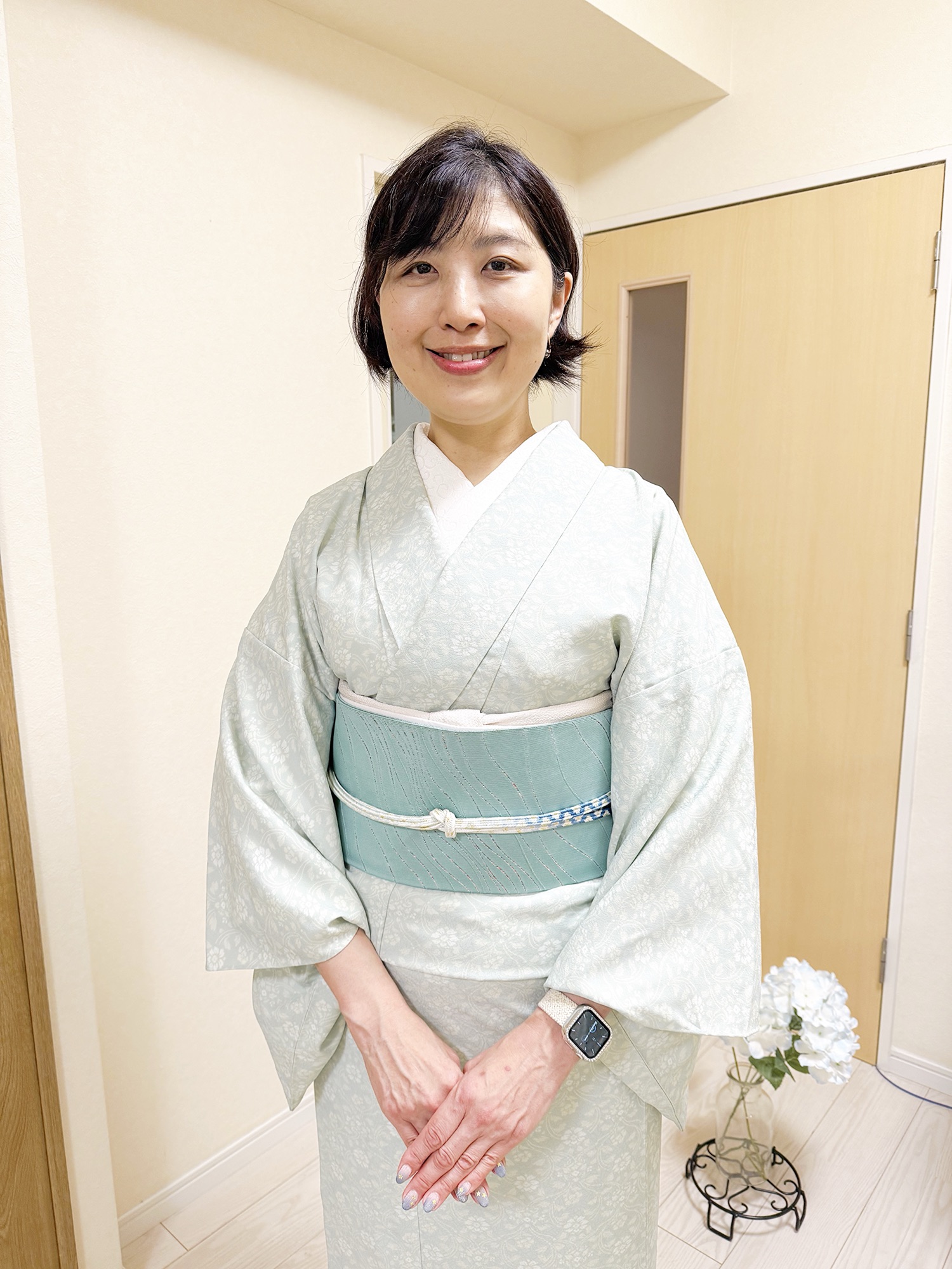 帯締めもネイルも初夏カラーが美しい!