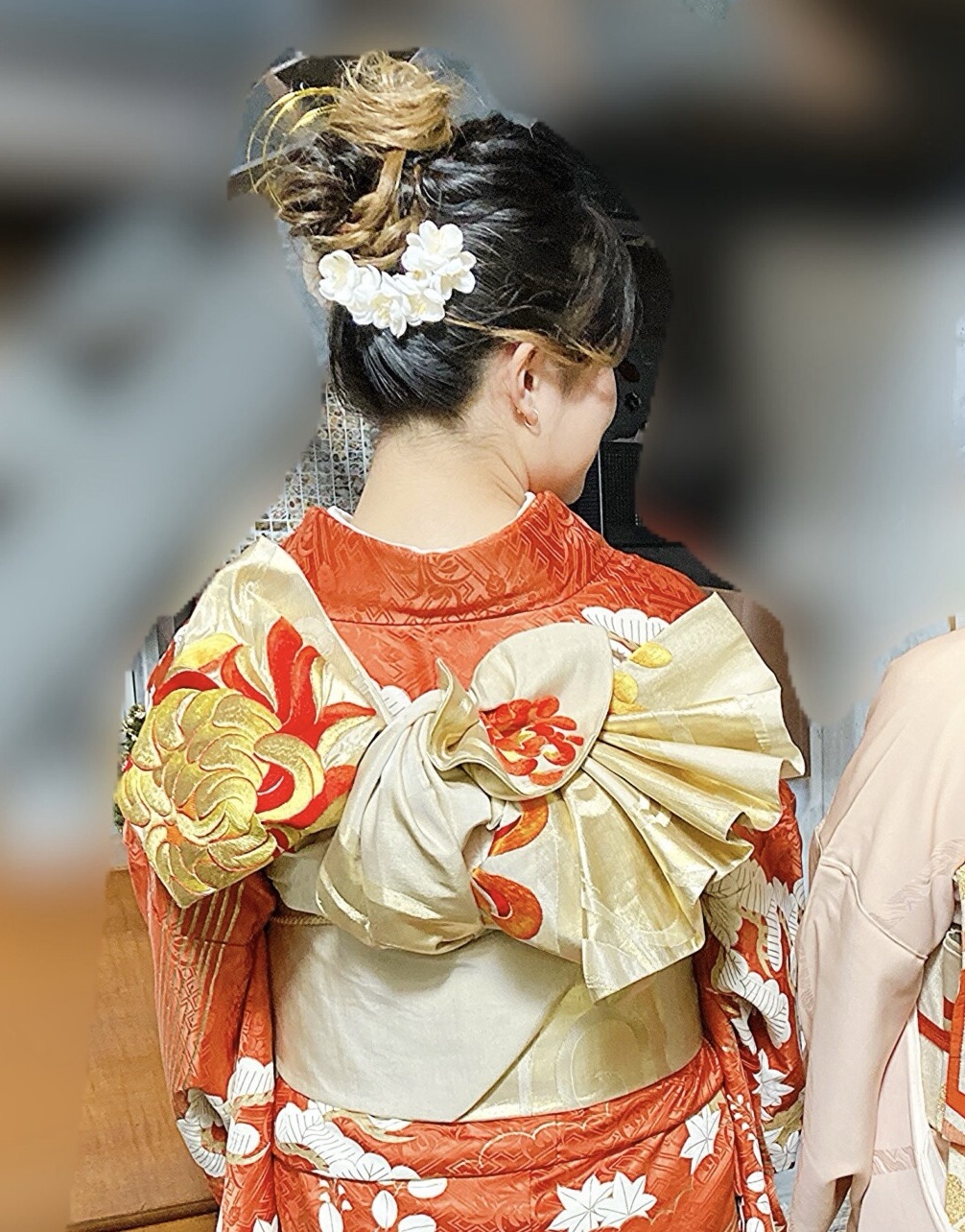 成人式で使用された丸帯。格式高く豪華な雰囲気になります。
