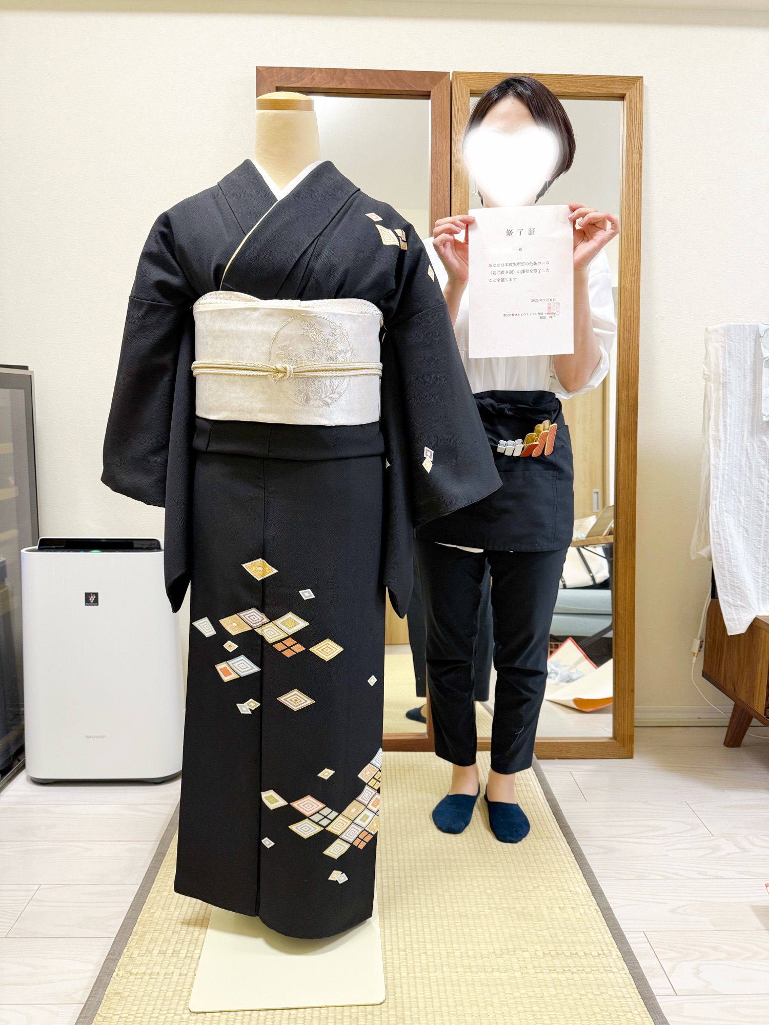 ※生徒様は修了テスト合格者なので、着付師育成コースの参加資格を得ました。