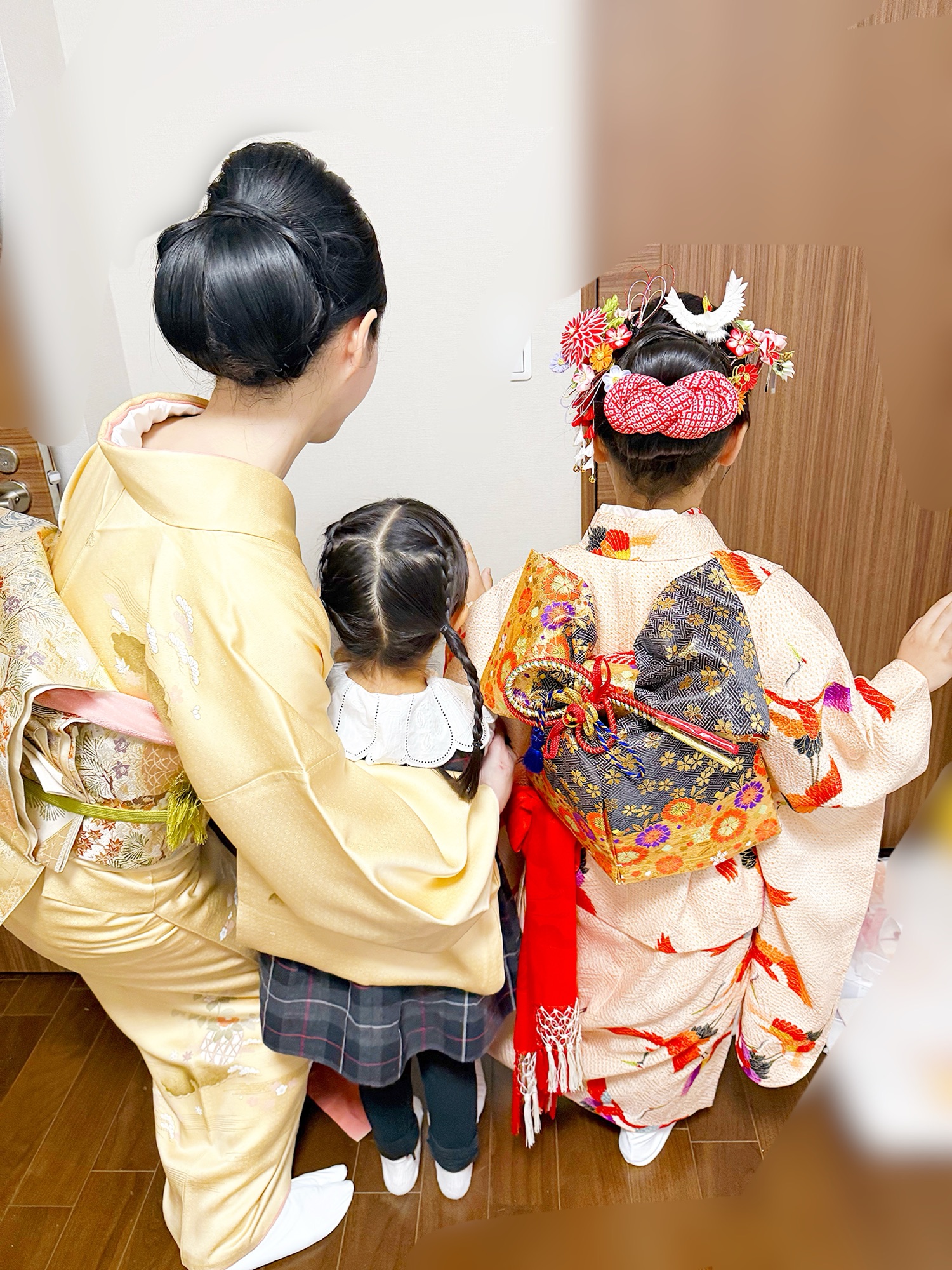 2. 【出張着付け録】七五三詣り、一家4名様の着付けとヘアセットを…