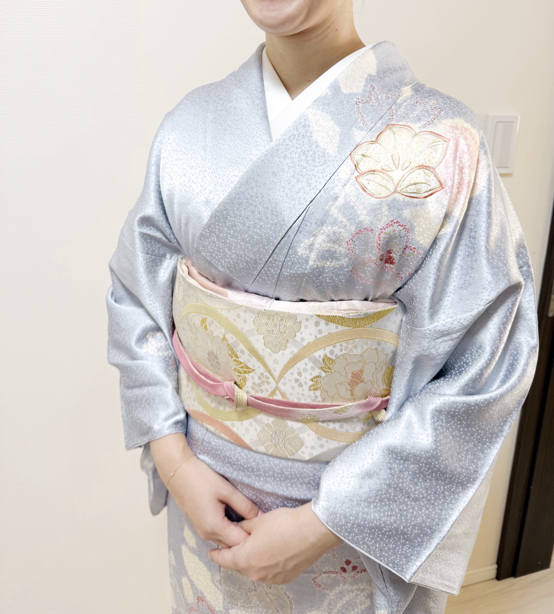 水色の訪問着でご友人の結婚式参列✨ホテルオークラ東京へ【出張着付け&ヘアセット|東京都中央区】