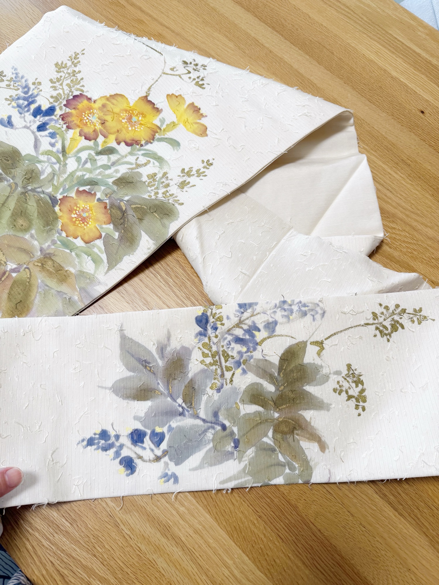 ちなみに、なんで黄色の花柄帯が