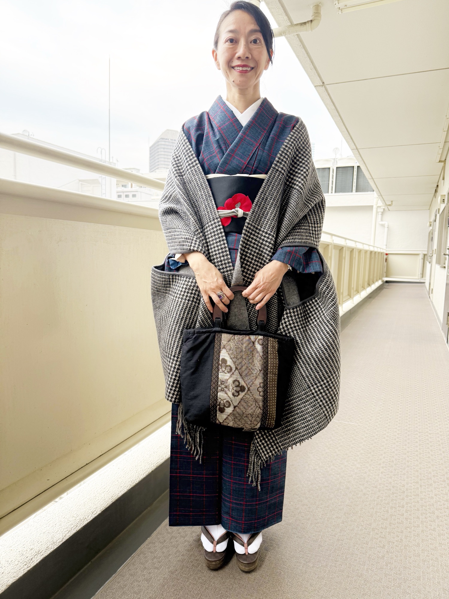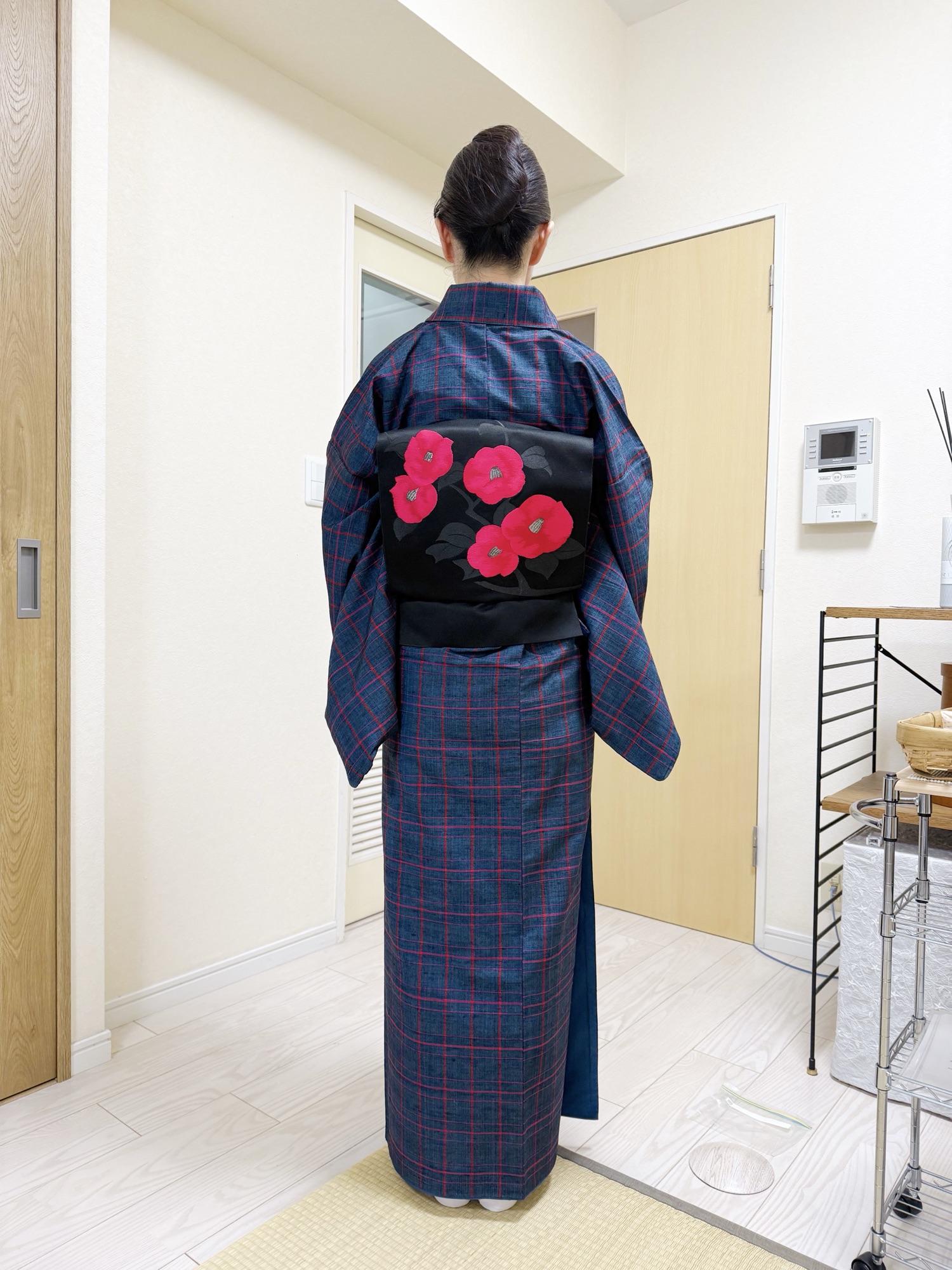 お母様の紬で粋に装う生徒さまの冬コーデ❄️|黒塩瀬の椿帯が映える一日