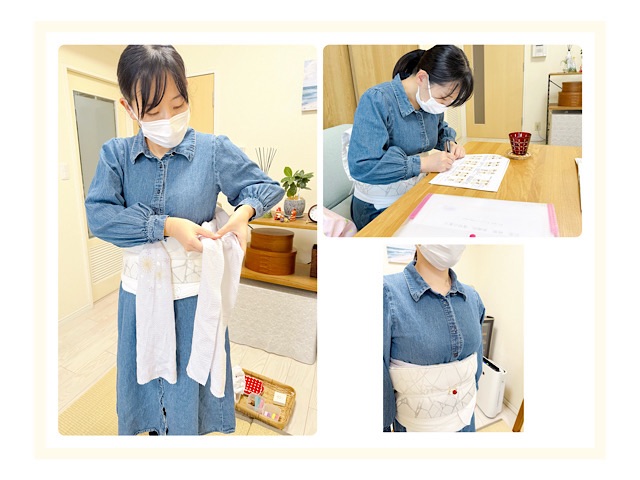帯揚げにゆっくり解説して練習を