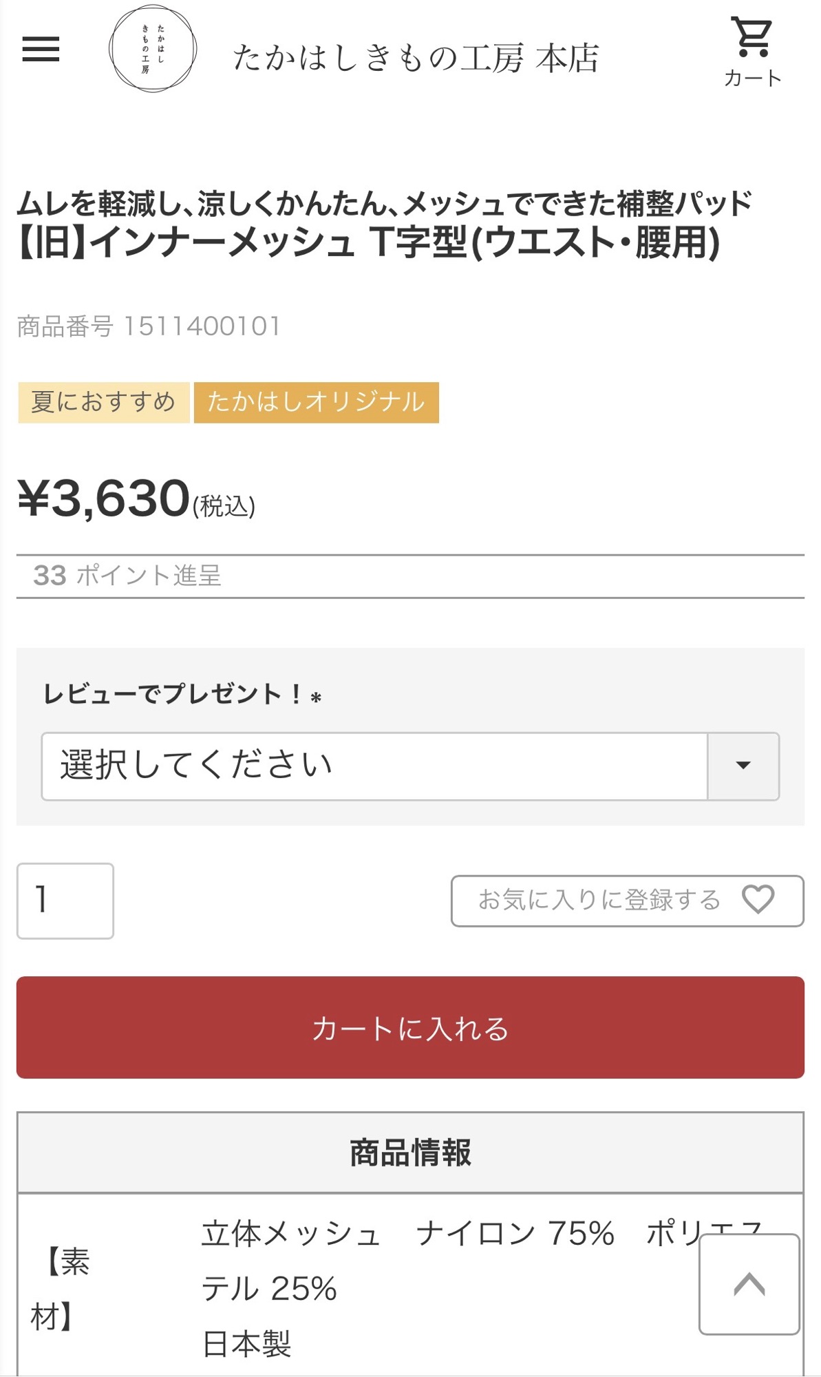 今まで使われていたインナーメッシュシリーズよりも、