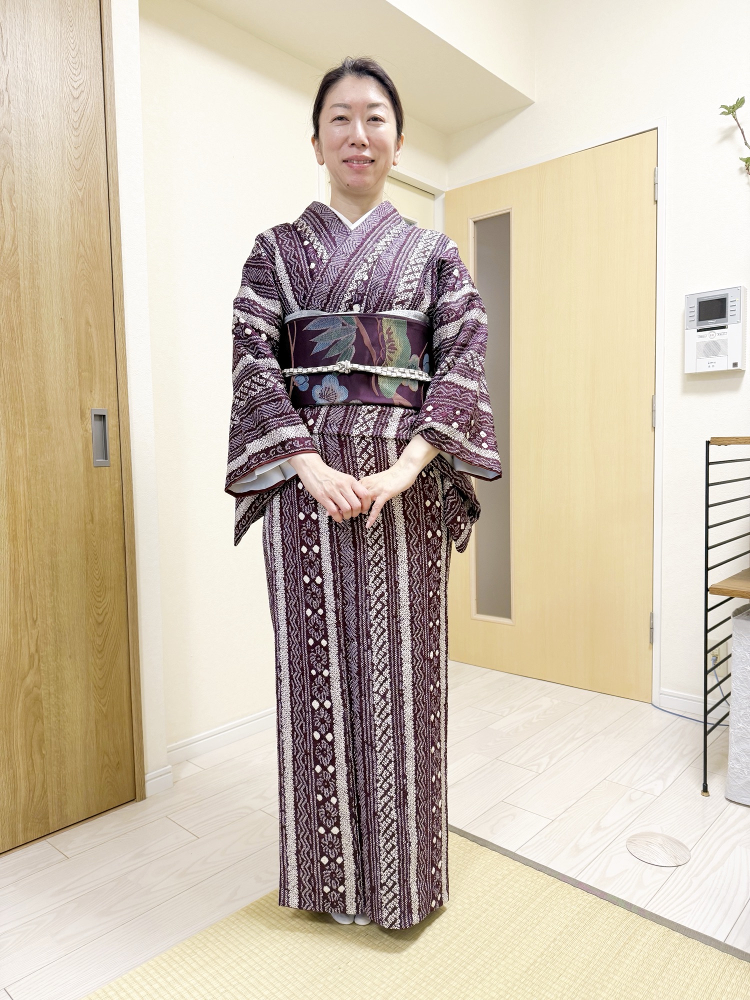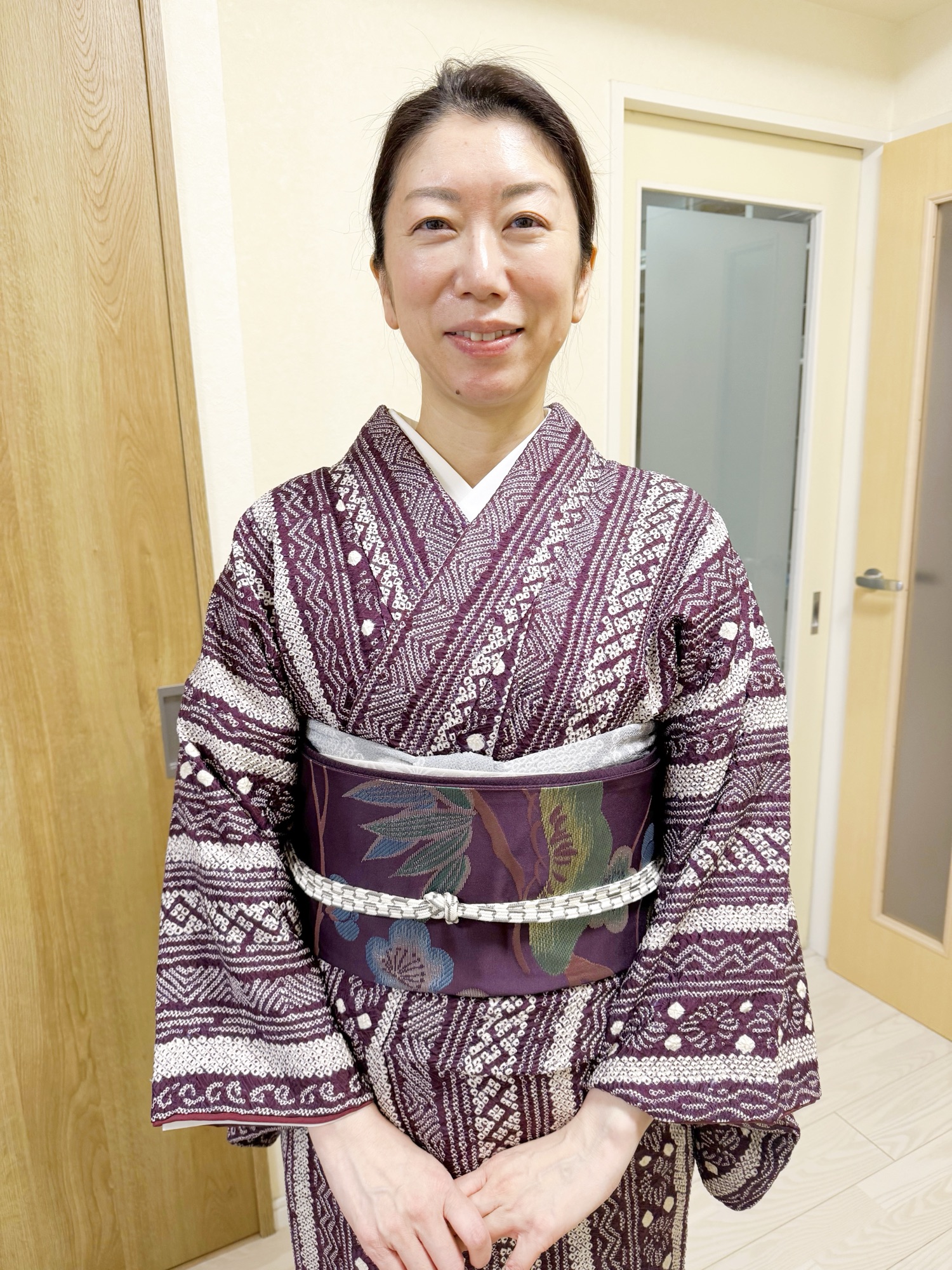 総絞り小紋に京袋帯と道明の御岳組|生徒様のモダン着物コーデ