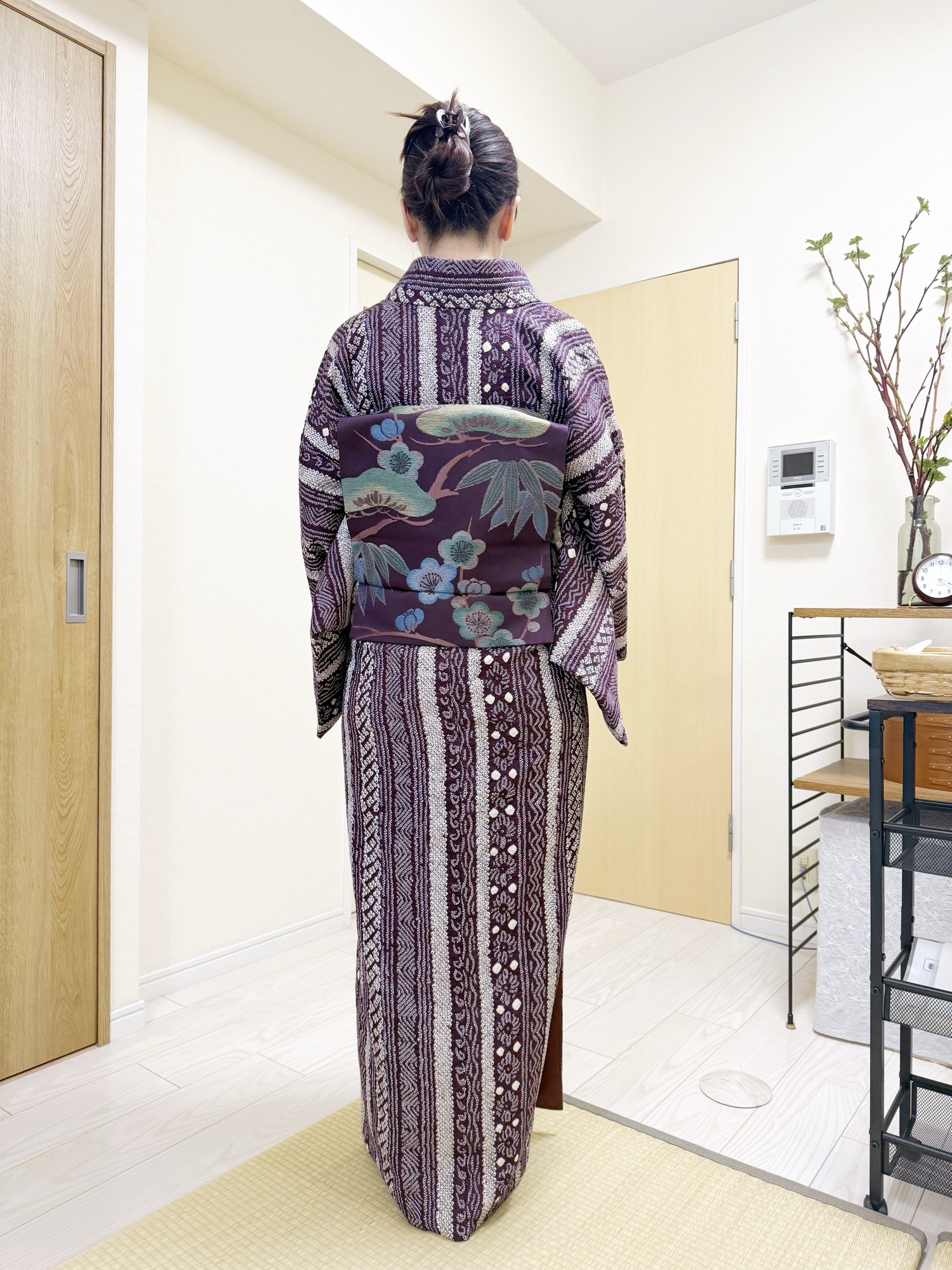 3. 気持ちをシャキッと!深紫の色無地で冬から春への着納めコーディ…