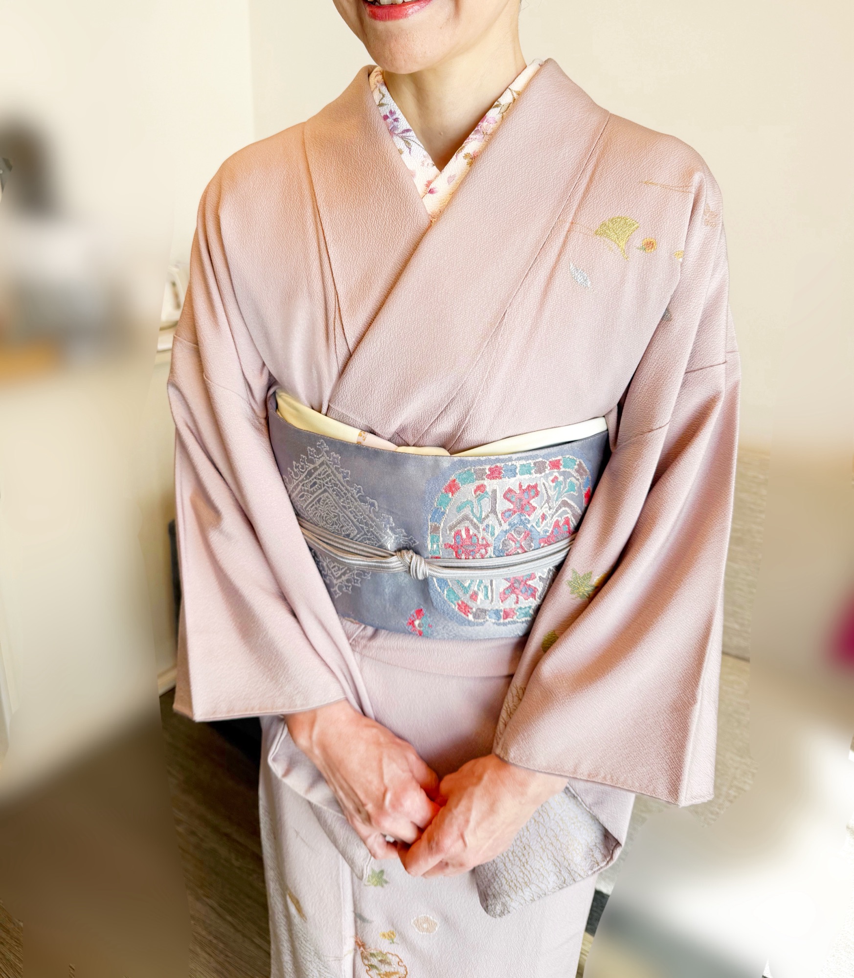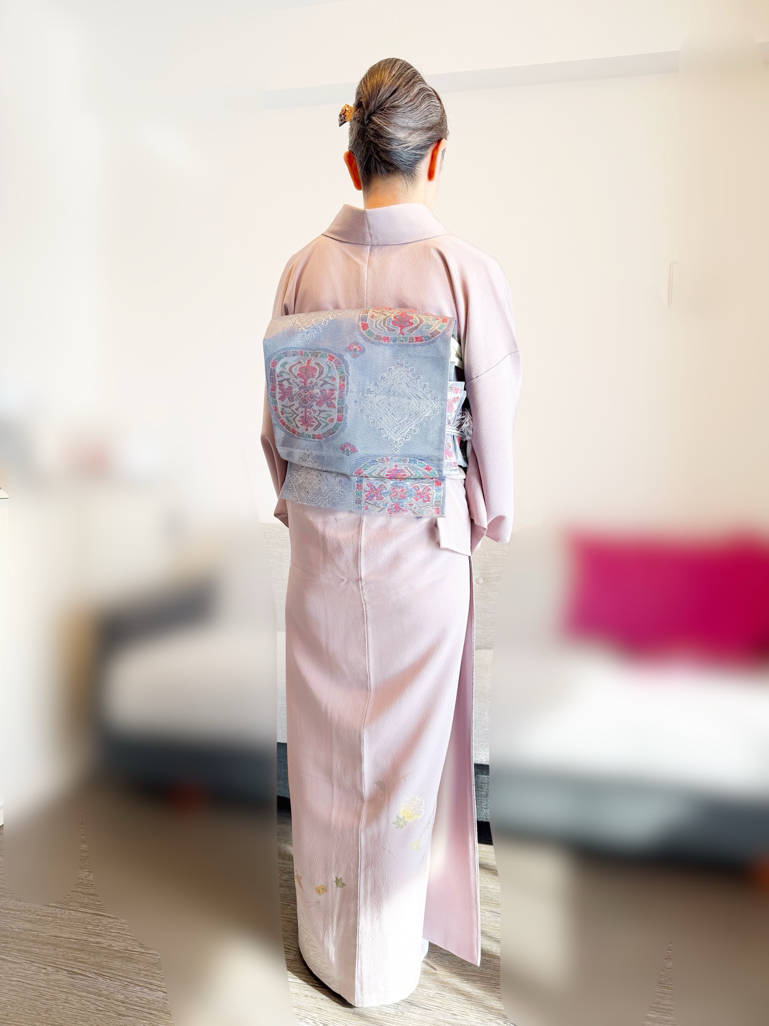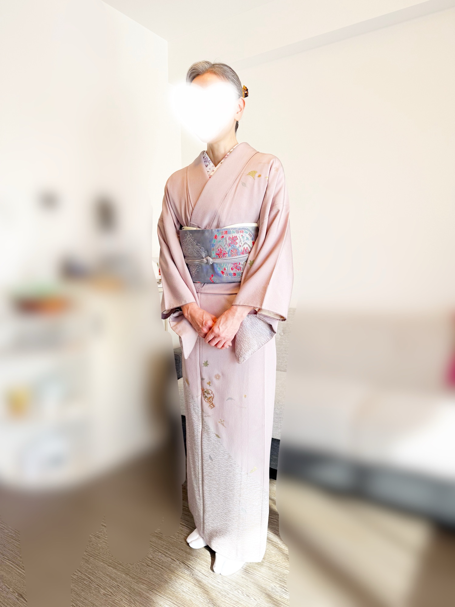 👘 小豆色の付け下げと、可愛らしい袋帯