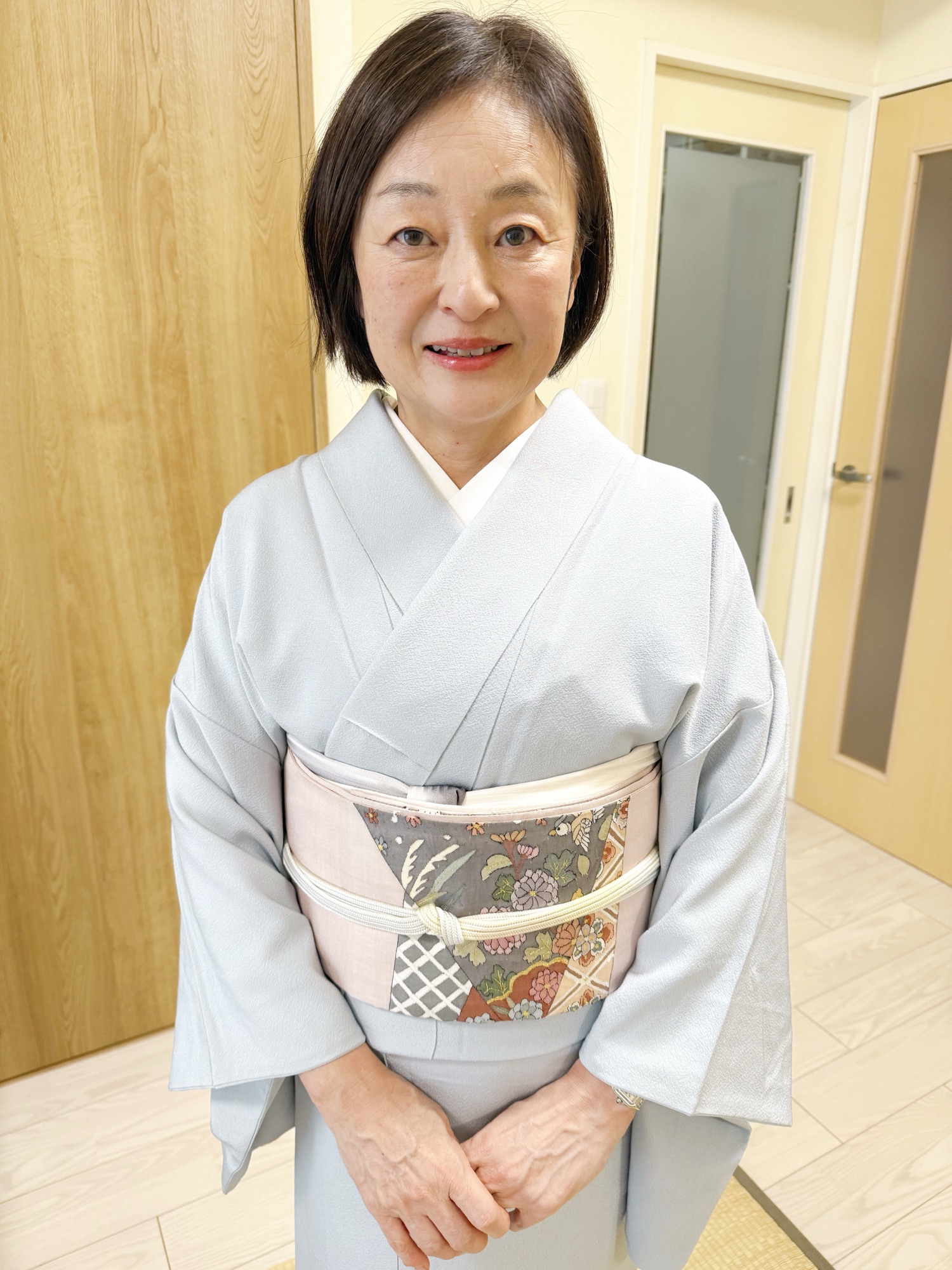4. 3月中旬の着付講師の着物コーディネート、明るい色がポイント