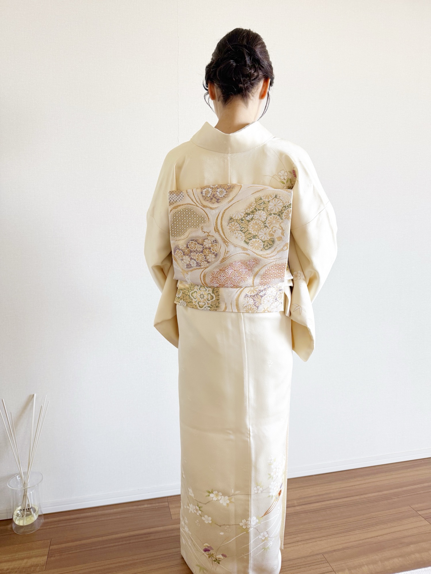 春を先取り!オフホワイトに桜が舞う、優美な訪問着スタイル