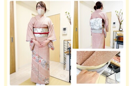 灰梅色🌸の色無地と白の西陣帯、夜桜の帯締めで新年コーデ