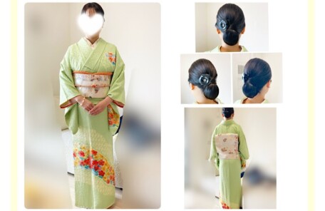 【出張着付け&ヘアセット録】爽やかなトロピカル訪問着で卒園式へ|東京都中央区…