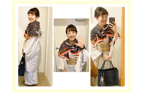 3月中旬の着付講師の着物コーディネート、花粉に負けない装いで!