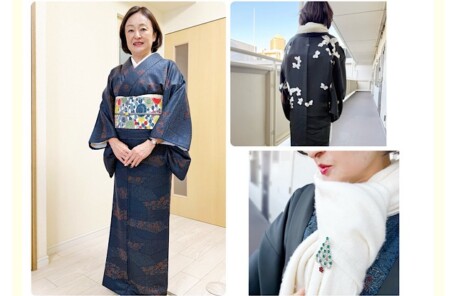 小紋に型絵染の帯でお出かけコーデ|受け継がれた蝶々柄の羽織とクリスマスブロー…