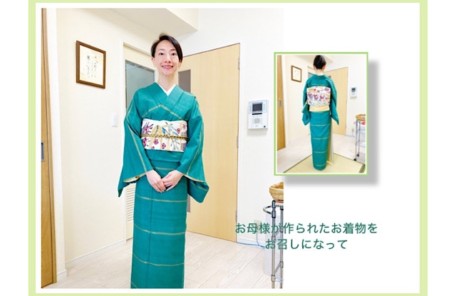 お母様が糸から染めて織った反物で作った紬を、初着用!