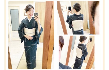 リボンアレンジはプロ級!?綿麻着物と半幅帯コーデ